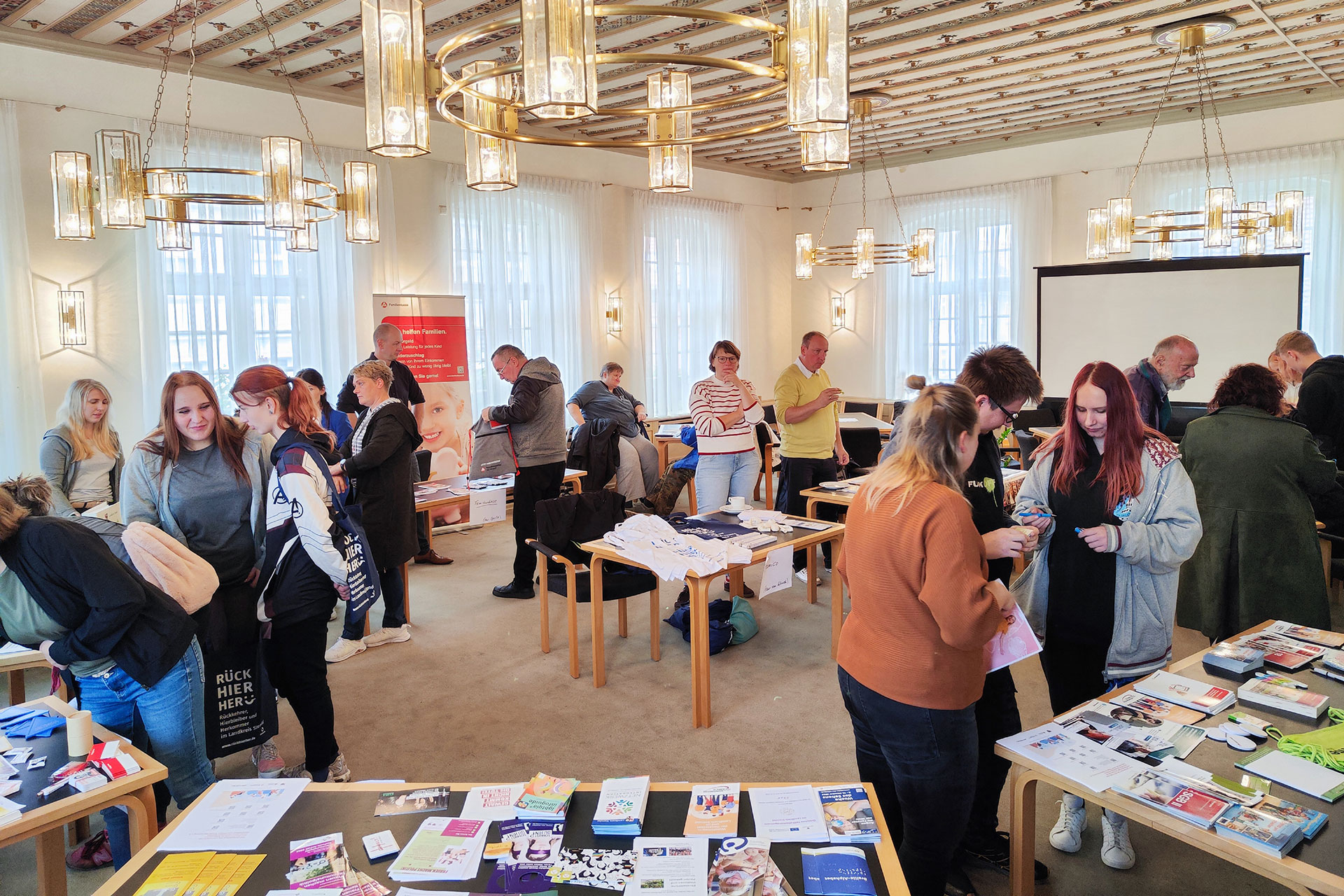 Für Familien – auch Kinder waren herzlich willkommen – bestand dort die Möglichkeit, sich über wichtige finanzielle Leistungen wie Kindergeld oder Bildung und Teilhabe sowie regionale Unterstützungsmöglichkeiten zu informieren. Neben der Familienkasse und dem Sozialamt waren auch das Jugendamt mit dem Elternportal KIVAN (Online-Beantragung von Kindergartenplätzen) und der Netzwerkstelle „Frühe Hilfen und Kinderschutz“ sowie die Ergänzende Unabhängige Teilhabeberatung, das Projekt FAMICO (Familien stärken, Perspektiven eröffnen) sowie die DRK-Beratungs- und Interventionsstelle MissMut vertreten.