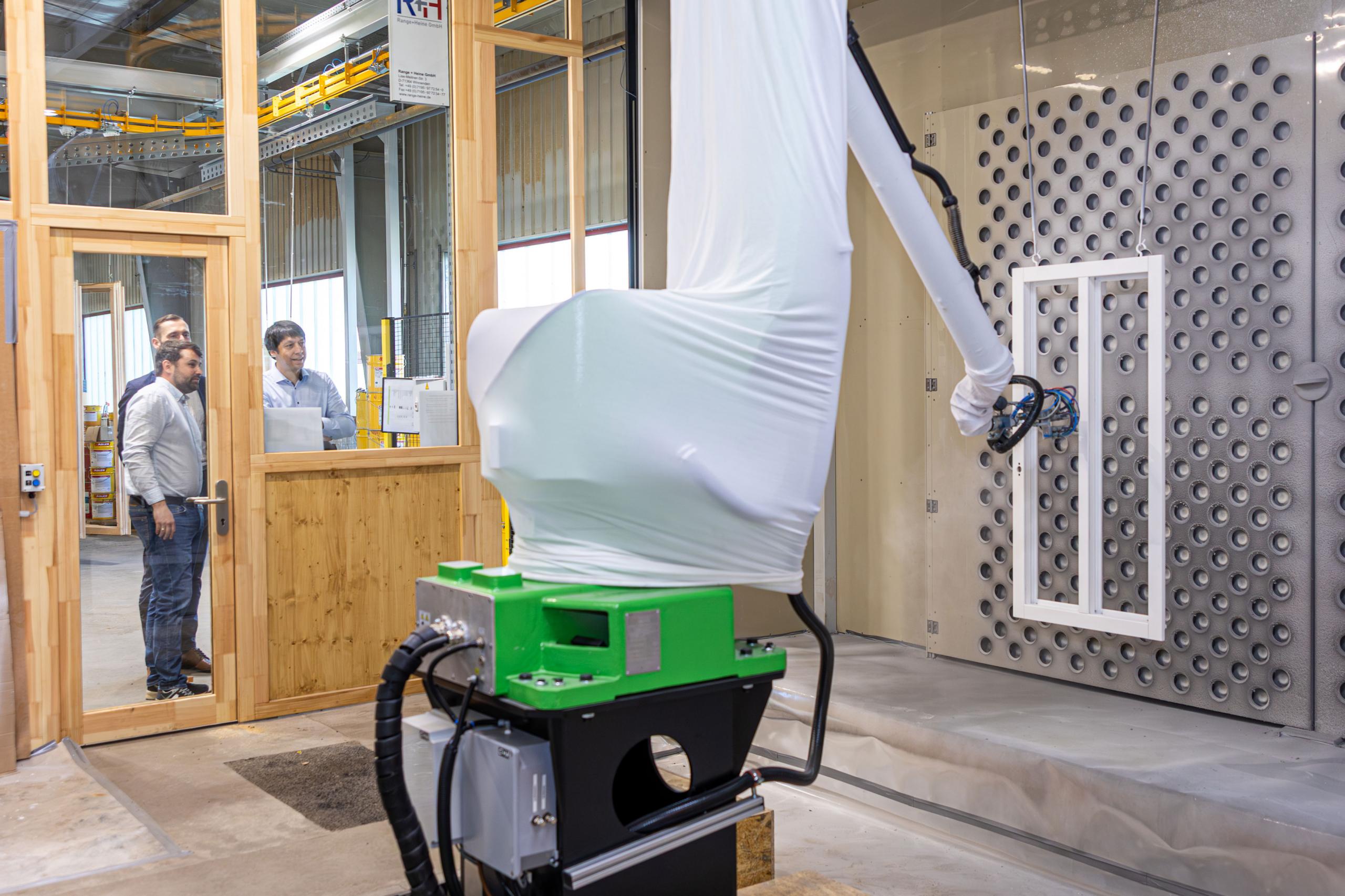 Die Produktion ist durchgängig organisiert – vom Wareneingang über den präzisen Zuschnitt bis hin zur Oberflächenbearbeitung. Insbesondere in die Lackierung hat das Unternehmen erneut investiert: Anfang April wurde eine robotergestützte Anlage in Betrieb genommen. „Diese gewährleistet eine gleichbleibend hohe Oberflächenqualität und maximale Wiederholgenauigkeit“, erklärte Thomas Manecke. Damit erhalten die individuell gefertigten Holzfenster und -türen exakt die gewünschte Farbgebung auf konstant hohem Niveau.