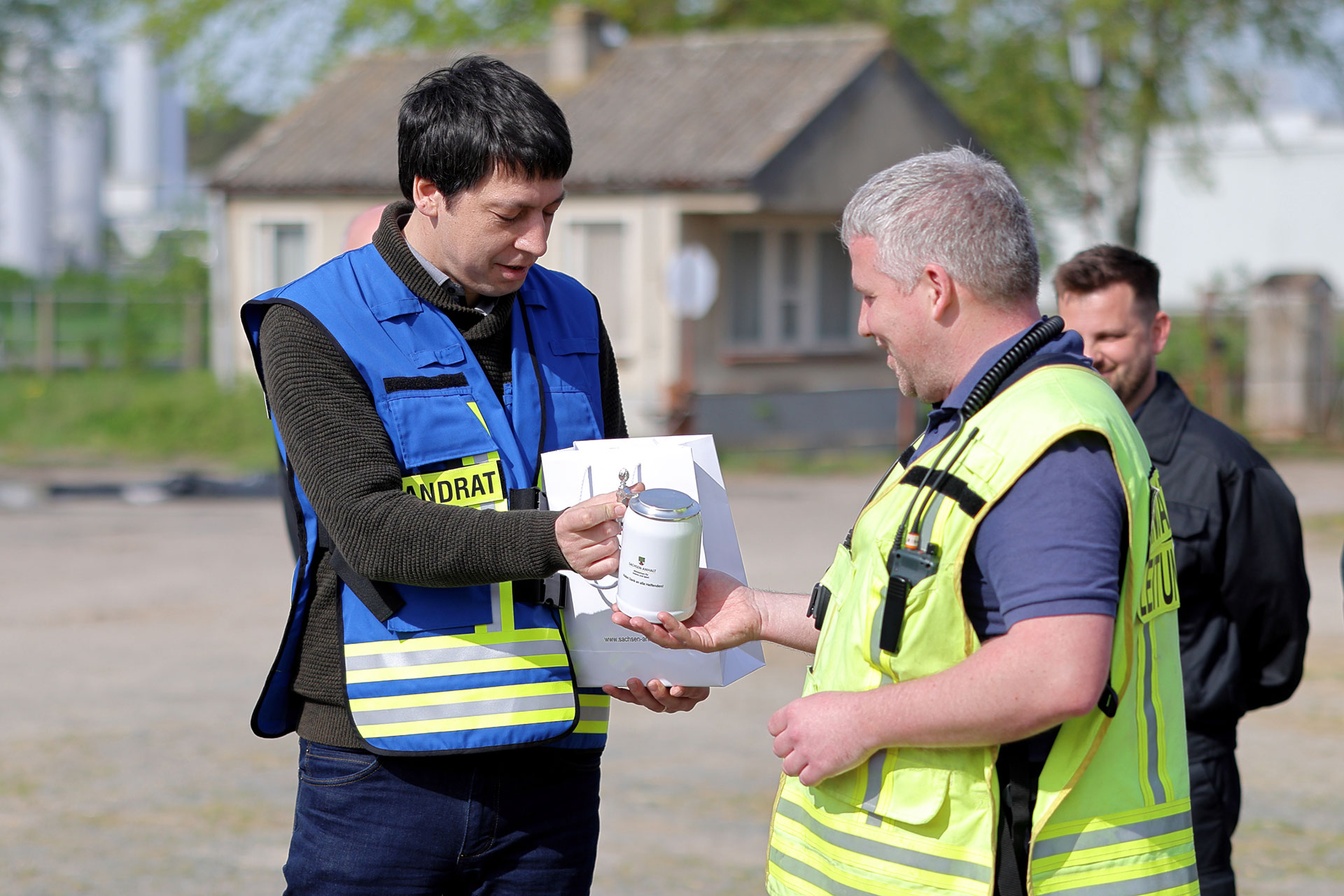 Für diesen Einsatz hat die Landesregierung Sachsen-Anhalts den beteiligten Kräften nun ihren besonderen Dank ausgesprochen. Stellvertretend für Ministerpräsident Dr. Reiner Haseloff hat Patrick Puhlmann im Rahmen der jüngsten Übung des Fachdienstes Brandschutz in Bismark an dessen Leiter Karsten Bessing eine Urkunde sowie ein Präsent überreicht. „In der schwierigen Lage haben Sie durch Ihre tatkräftige Hilfe dazu beigetragen, die Hochwasserkatastrophe im Landkreis Mansfeld-Südharz zu bewältigen“, hat der Landrat von der Urkunde vorgetragen. Die Kameraden haben, so die Landesregierung, große Solidarität und Gemeinschaftssinn bewiesen. Weiterhin überreichte Puhlmann stellvertretend für seinen Amtskollegen aus dem Landkreis Mansfeld-Südharz, André Schröder, eine Plakette. Den Danksagungen aus dem südlichen Teil des Landes schloss sich auch der Stendaler Landrat an und würdigte den Einsatz der Kameraden des Fachdienstes.