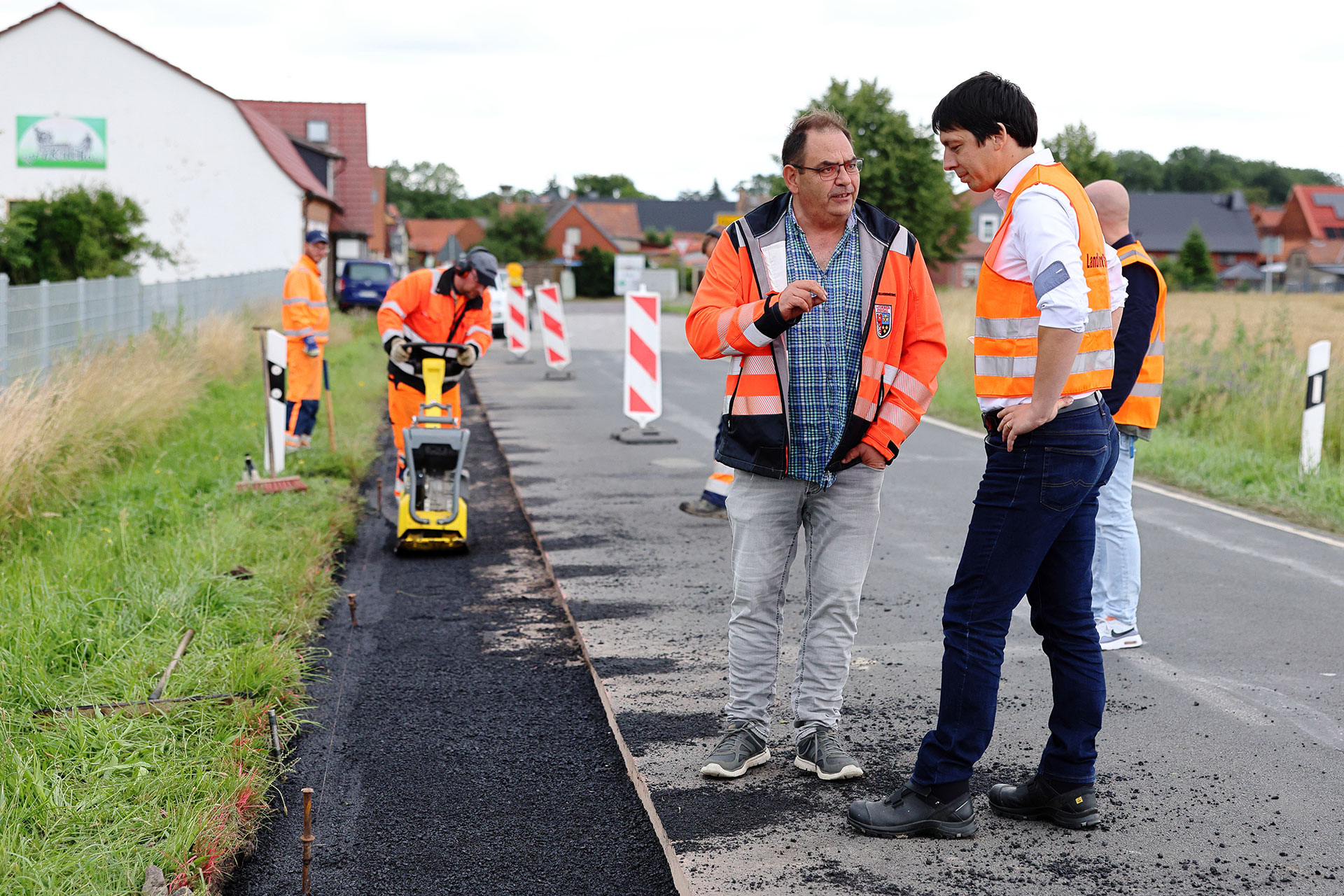 Landrat begutachtet Baumaßnahmen und würdigt Arbeit der Straßenwärter.