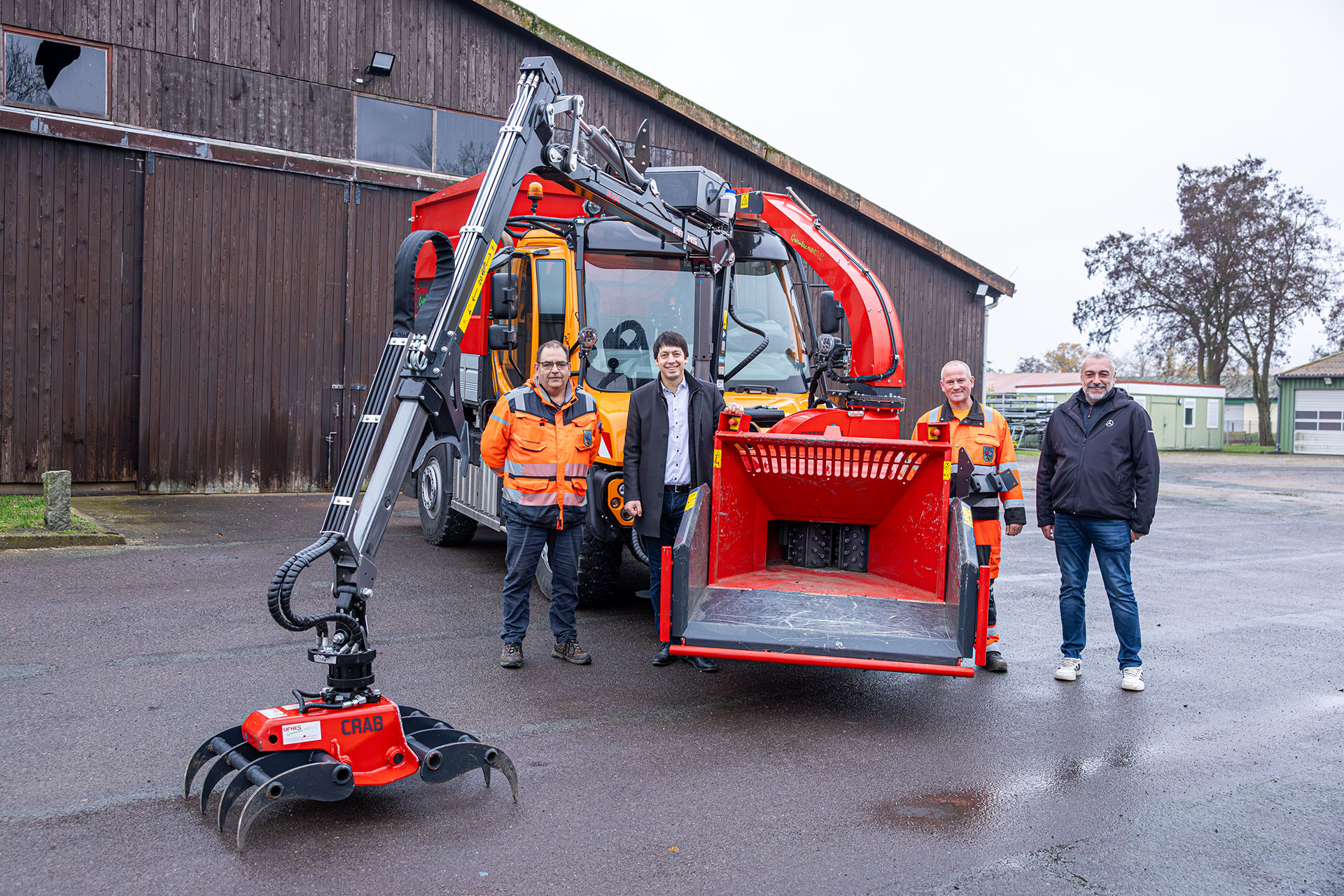 Konkret geht es um ein Anbaugerät für den Unimog. Gab es bisher im vorderen Bereich einen Häcksler, der manuell mit Baumstämmen und Strauchschnitt befüllt werden musste, wird nun ein solches Gerät mit zusätzlichem Greifarm eingesetzt. „Dieses Gerät war für den Unimog noch gar nicht auf dem Markt, da hat der Landkreis Stendal schon danach gefragt“, sagte Dirk Siemens vom Händler Harald Bruhns im Rahmen der Übergabe. „Für Unimogs gab es in Deutschland noch keine Zulassung mit diesem Anbaugerät. Das ist erst auf Drängen von Carsten Köppe entstanden“, so Siemens weiter.