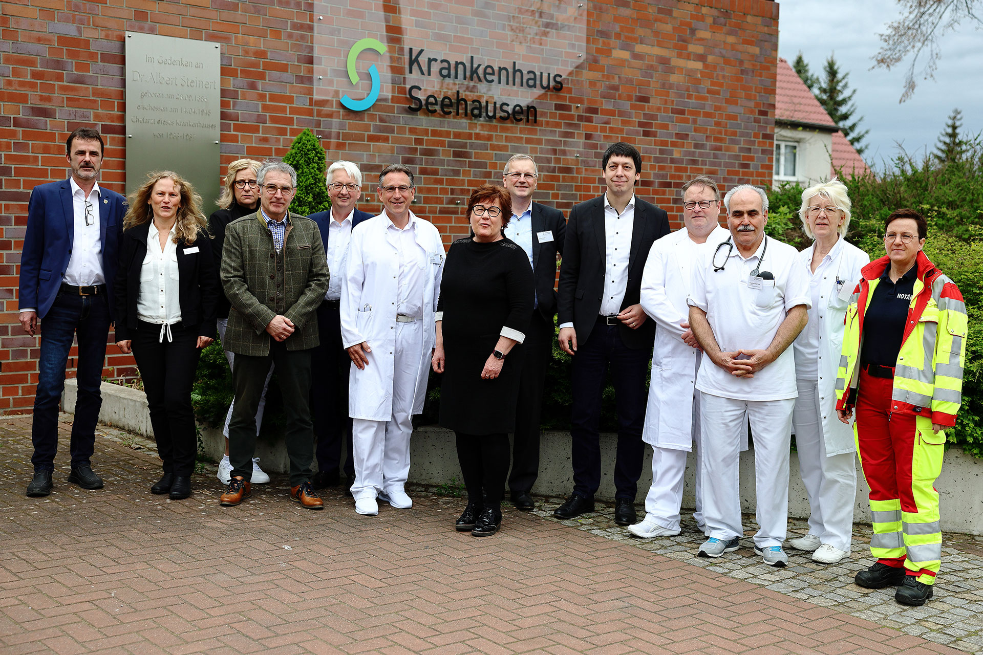 Ministerin, Landrat und weitere politische Vertreter besuchen Krankenhaus Seehausen nach Trägerwechsel.