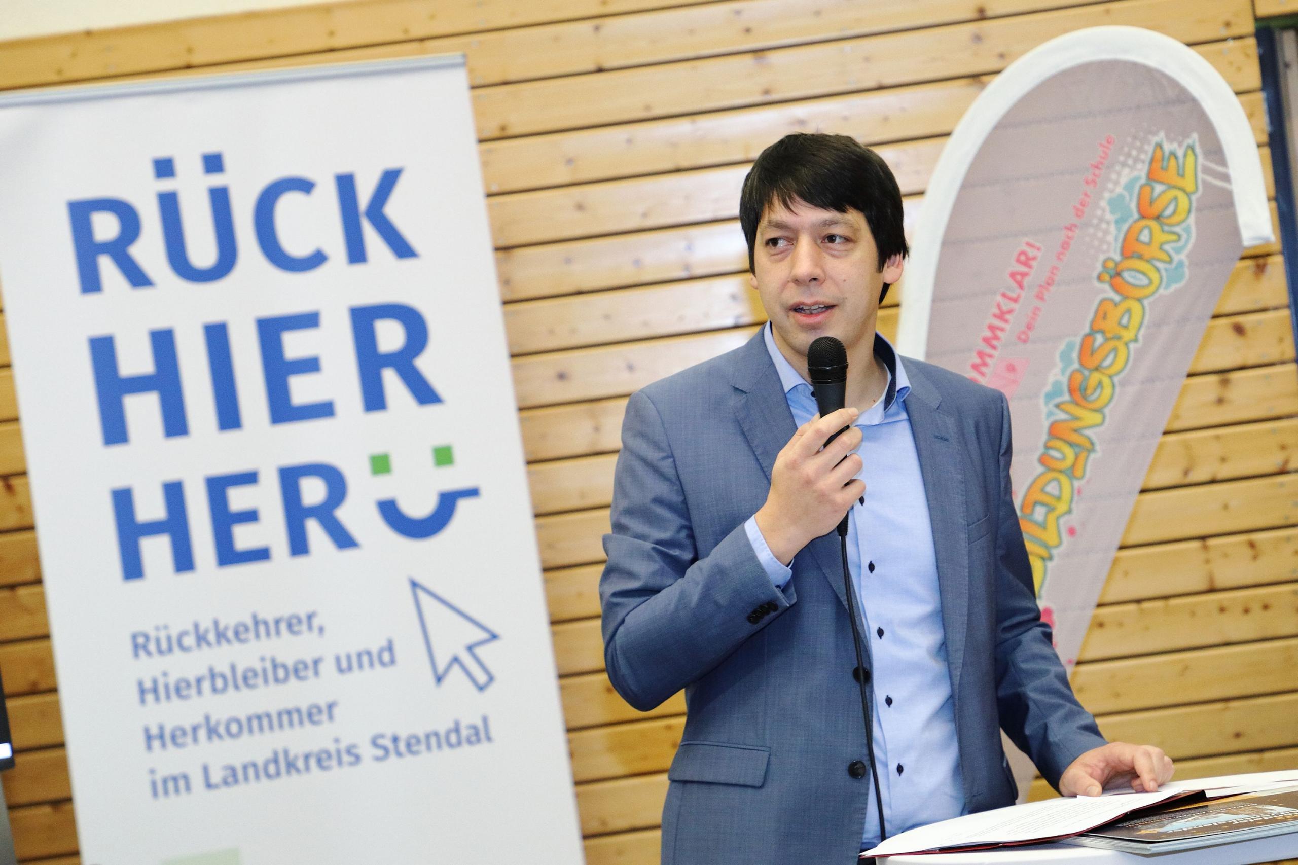Nach 2020 hat am Mittwoch zum ersten Mal wieder eine große Ausbildungsbörse des Landkreises Stendal stattgefunden. In der Sporthalle des Stendaler Winckelmann-Gymnasiums in der Moltkestraße haben insgesamt 60 Institutionen und Unternehmen ihre Stände aufgebaut, um die Schüler aus 21 Einrichtungen über Praktikums- und Ausbildungsplätze zu informieren. Mehr als 500 davon waren im Angebot, insgesamt über 1.000 Mädchen und Jungen der achten bis zwölften Klassen haben die Messe zeitversetzt besucht, sie wurden – organisiert und finanziert durch die Kreisverwaltung – mit Bussen nach Stendal gebracht. Die Kosten von etwa 4.500 Euro dafür trägt der Landkreis. Zur Eröffnung richtete Patrick Puhlmann ein paar Worte an die Aussteller. „Wir freuen uns, so viele Unternehmen und Institutionen begrüßen zu dürfen. Das sind mehr als vor zwei Jahren, was uns zeigt, wie wichtig diese Ausbildungsbörse ist“, so der Landrat. Er kündigte dabei auch an, dass die vor Corona beliebten Roadshows im neuen Jahr wieder starten werden. „Ich möchte insbesondere unserem Team der Wirtschaftsförderung, aber auch allen Beteiligten und fleißigen Helfern meinen Dank dafür aussprechen, dass sie diese Ausbildungsbörse so auf die Beine gestellt haben.“ Darüber hinaus nutzte Puhlmann die Möglichkeit, die Aussteller auf den Rückkehrertag hinzuweisen. Dieser findet traditionell am 27. Dezember im Landratsamt statt und soll Altmärkern, die verzogen und über die Feiertage in der Heimat sind, ermöglichen, sich über Job-Perspektiven zu informieren.